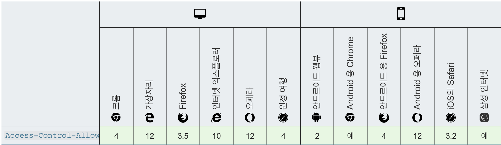 현재 CORS를 지원하는 브라우저는 다음과 같습니다. (IE하위 버전을 제외하고 전부 지원됩니다.)