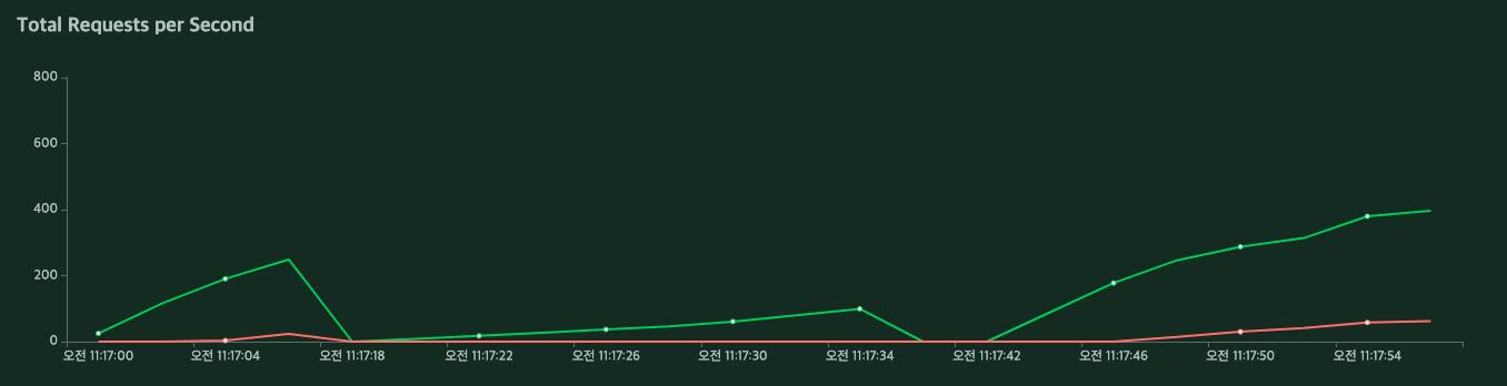 파란색이 성공, 빨간색이 실패율로 시간이 갈수록 실패율이 올라가는 것을 볼 수 있습니다.