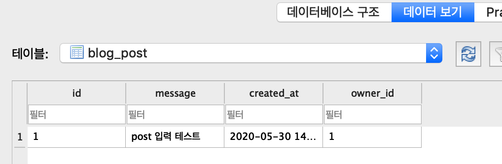 더미 데이터를 앞 썬 시간에 생성했습니다. 아직 owner에 값을 넣지 않았기 때문에