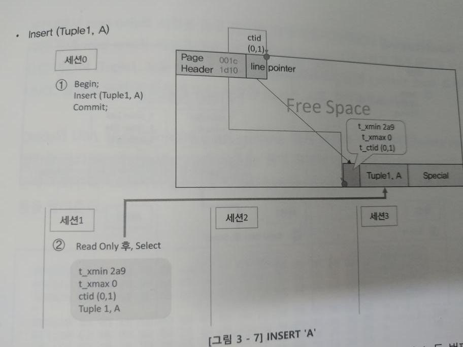 아래의 그림은 MVCC로 insert/update가 충돌하지 않는 것을 보여준다.