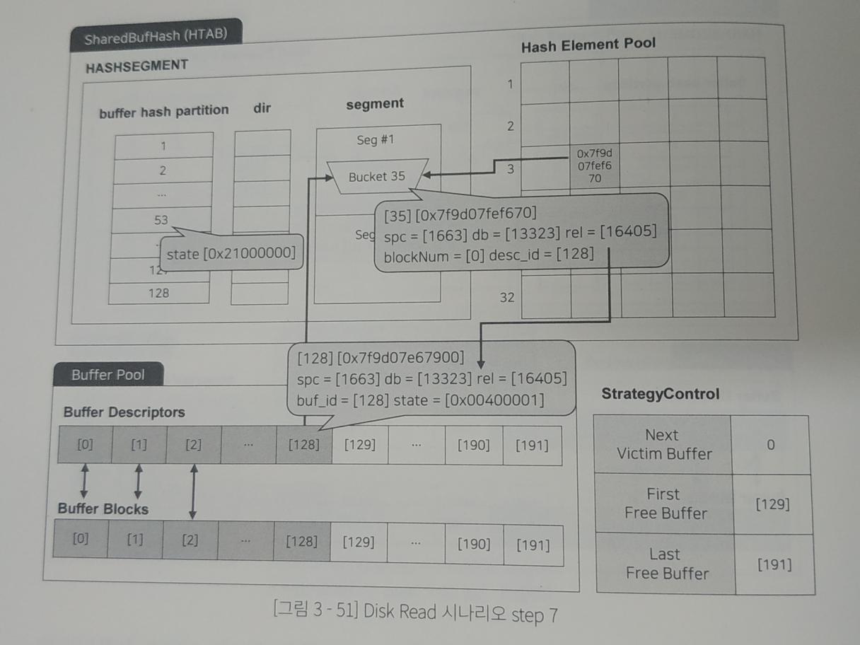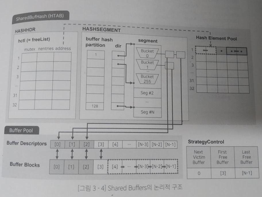 Hash table(SharedBufHash) : 데이터가 메모리에 로드되어 있는지 확인을 위한 테이블