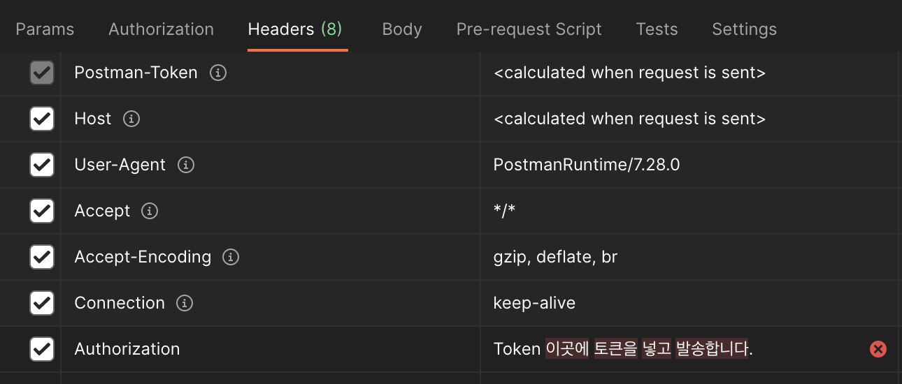 5. TokenAuthentication 미들웨어에서는 먼저 header의 token을 가져옵니다.