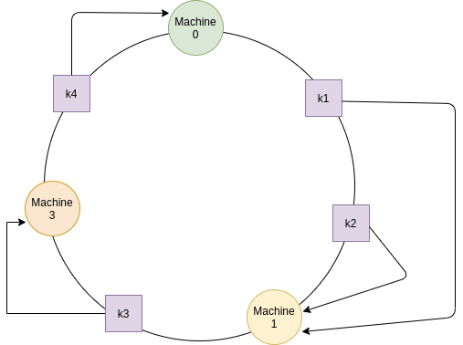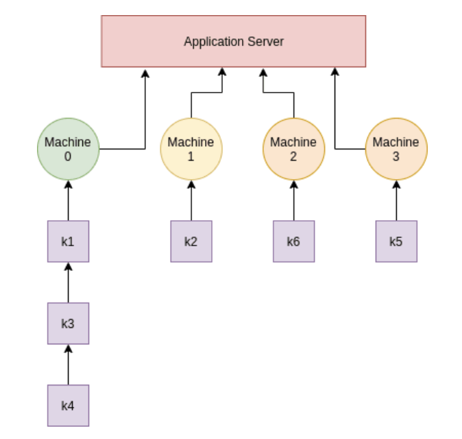 Example -> number of servers, n = 4 and we have 6 keys