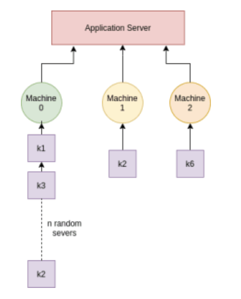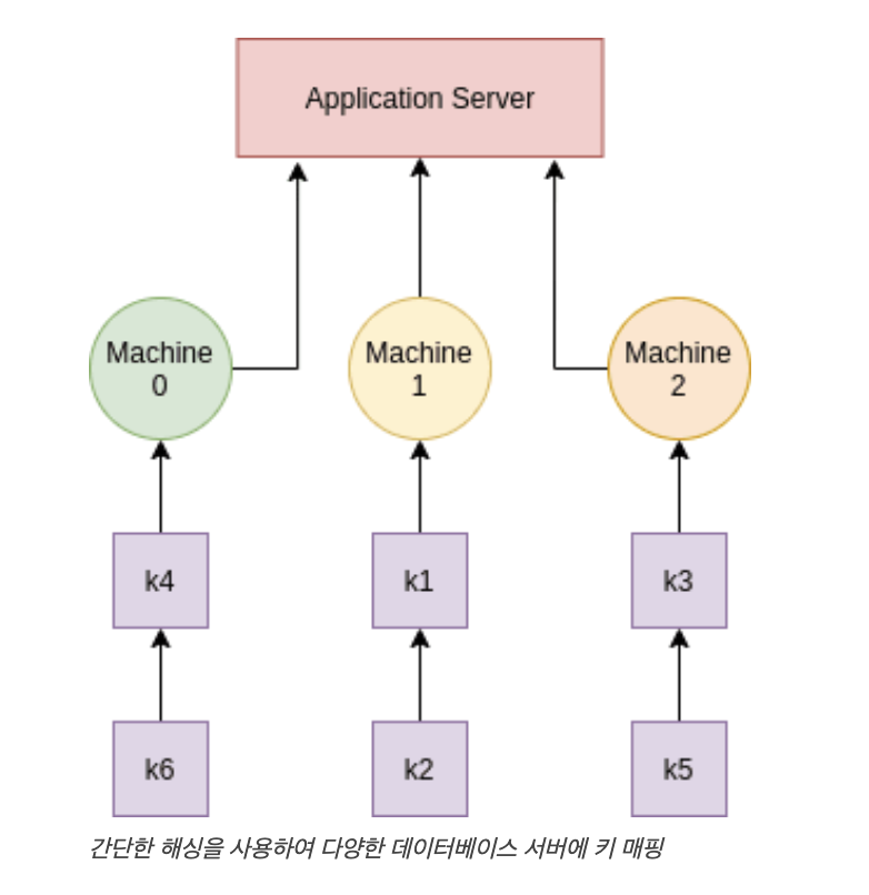 위의 server_number(hashing)에 따라 3 개의 서버에 키가 배포되는 방법이다.