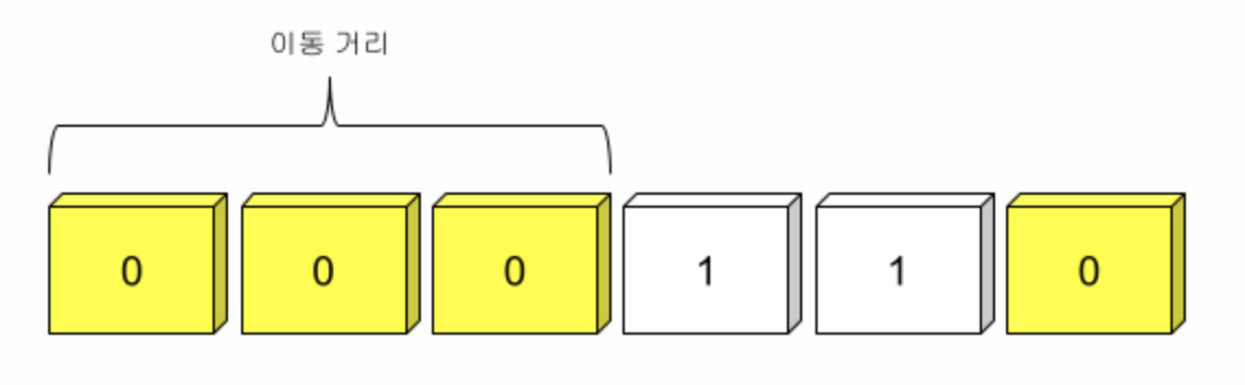 1을 만나기 전까지 0의 개수가 전진할 수 있는 칸의 숫자다.(반대로 해도 상관없다.) 그리고 0칸 이동(제자리)이 나올 경우에 한 칸을 이동할 수 있도록 규칙을 추가한다. 그러면 가장 재수 없는 경우에도 N(거리)만큼 주사위를 던지는 걸로 목적지에 도착할 수 있을 거다. 이 주사위를 여러 번 던지면, Jump 시퀀스를 만들 수 있다.
