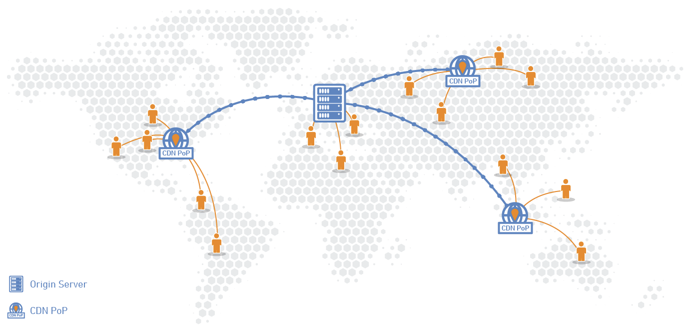 CDN은 많은 양의 정적 미디어를 제공하는 사이트에서 사용되는 일종의 캐시이다. 일반적인 CDN 설정에서 요청은 먼저 CDN에 정적 미디어를 요청한다. CDN을 사용할 수 없는 경우 백엔드 서버에 파일을 쿼리하고 로컬로 캐시 한 다음 요청하는 사용자에게 제공한다