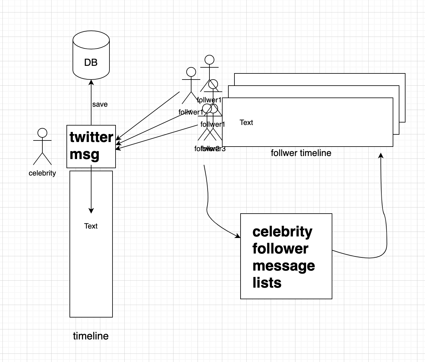 - 모든 사용자는 유명인 목록을 매핑하고 요청이 도착하면 런타임에 트윗을 혼합하고 캐시 한다.