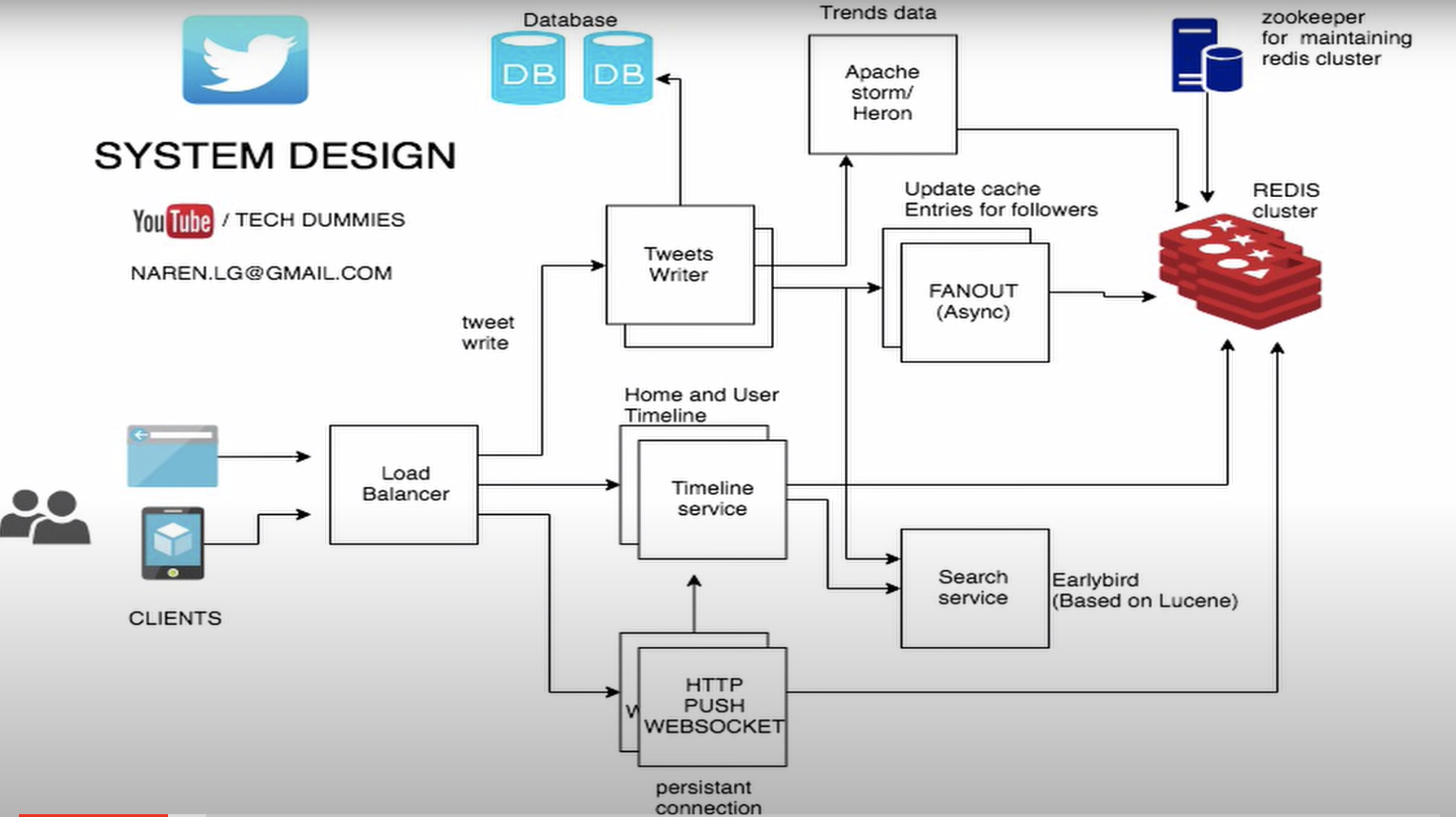 - Load Balancer를 통해 트윗이 백엔드 서버로 전송된다.