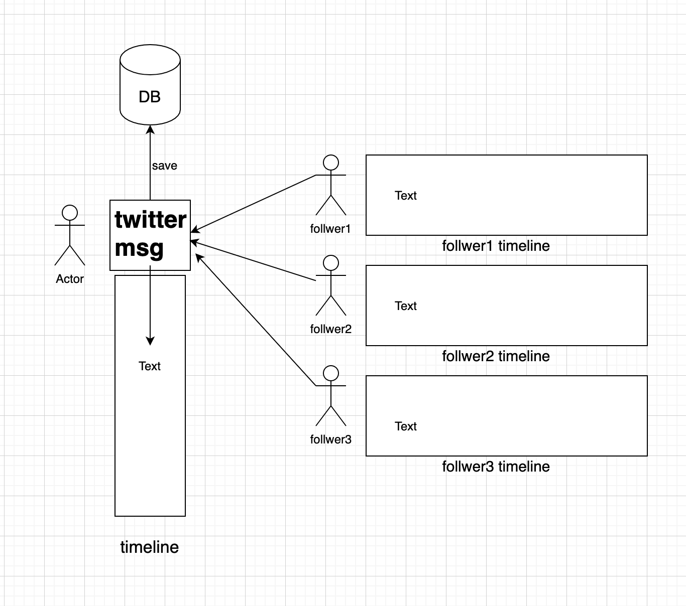 - 팔로워들의 타임라인에 기록된다. (Redis) 바로 갱신함