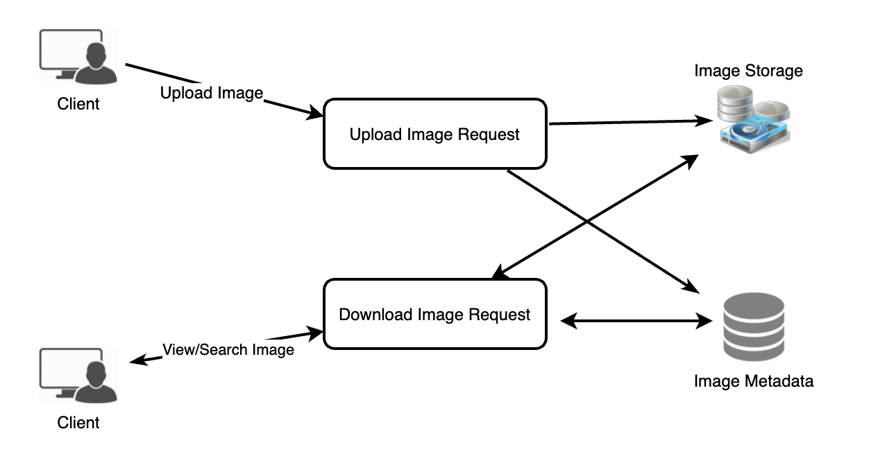 서비스는 사진을 저장하기 위한 스토리지 서버와 사진에 대한 메타 데이터 정보를 저장하기 위한 데이터베이스가 필요하다