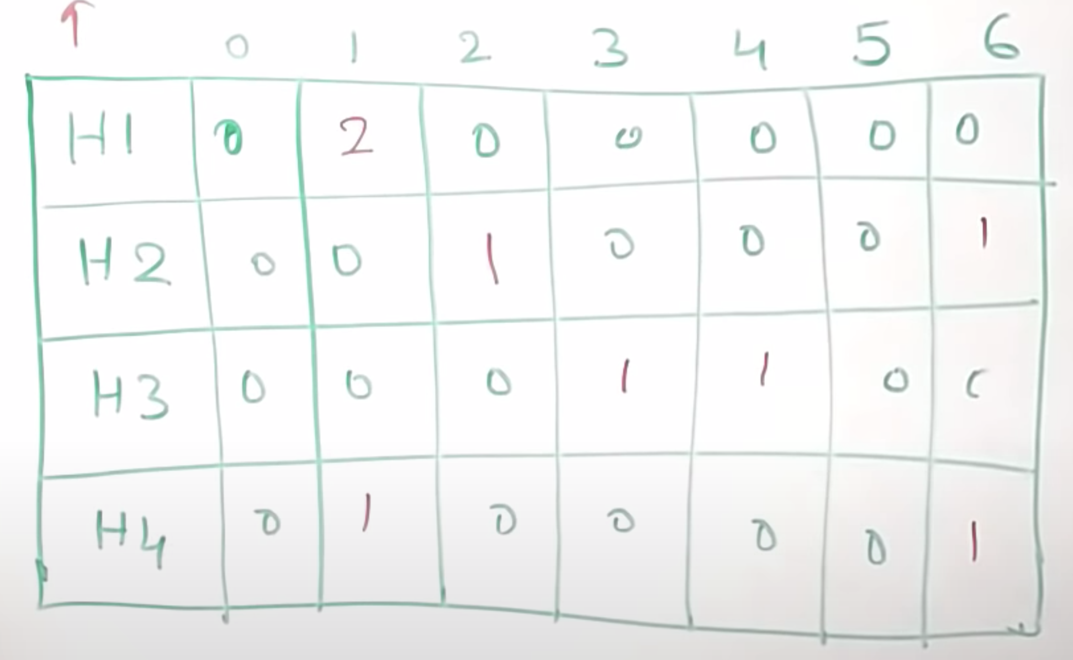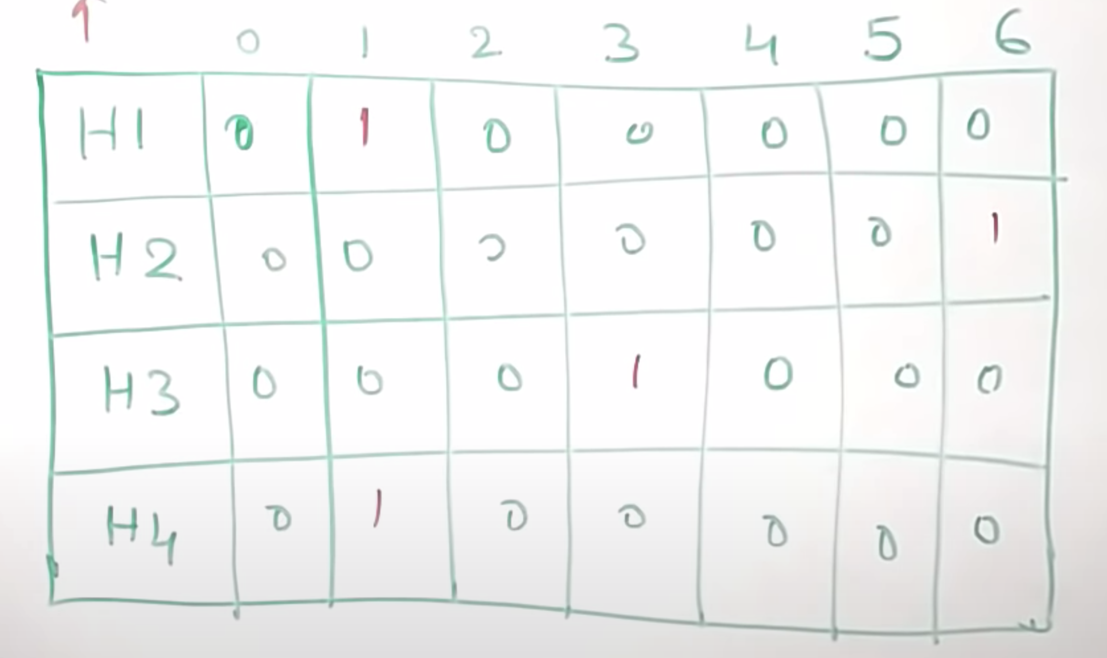 이것을 해당 해시함수에 나온 값에 맞게 테이블에 표시해보면 다음과 같다.