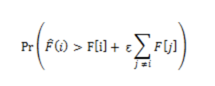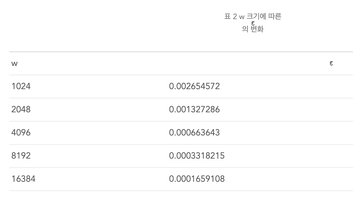 count min sketch의 오차율은 다음과 같이 표기된다. (무슨 말인지 모르겠다..)