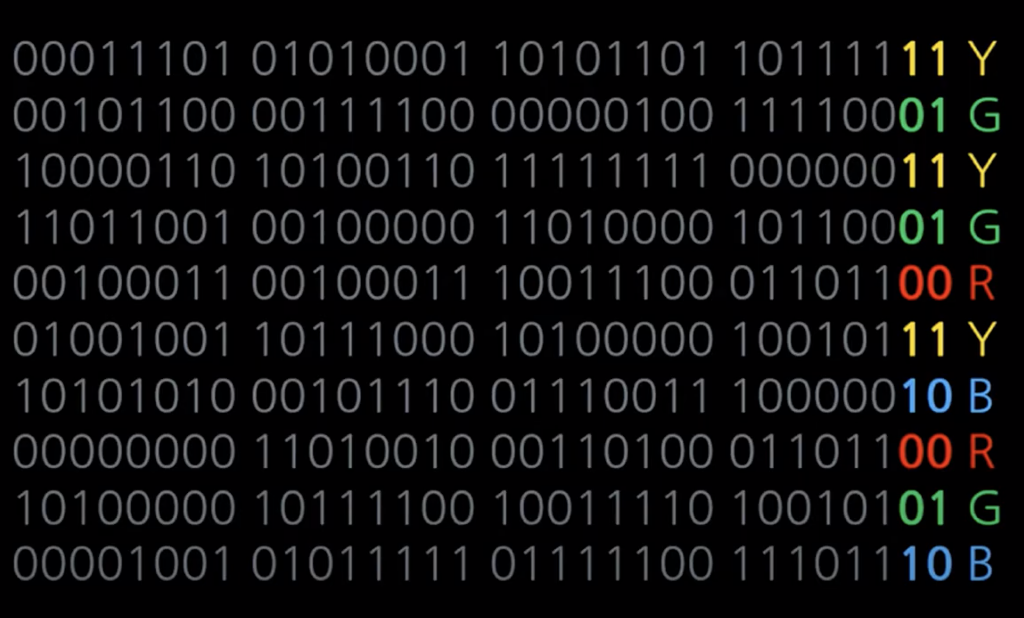 00 → R , 01 → G , 10 →B , 11 → Y로 구분하였다.