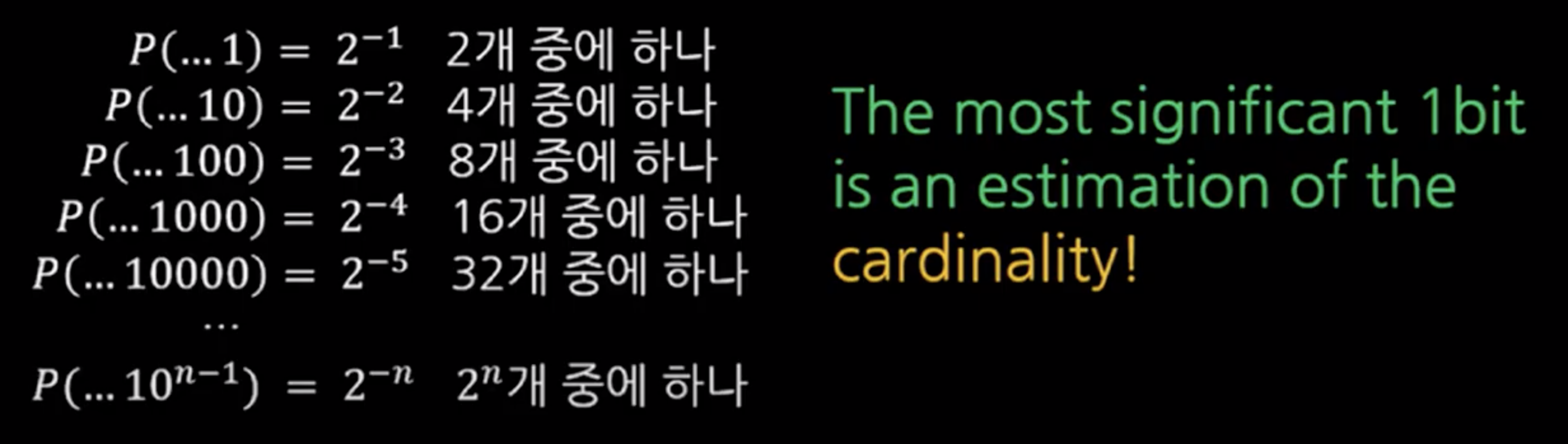 즉 비트의 값은 카디날 리티(집합의 크기)의 추정치 확률이 될 수 있다!