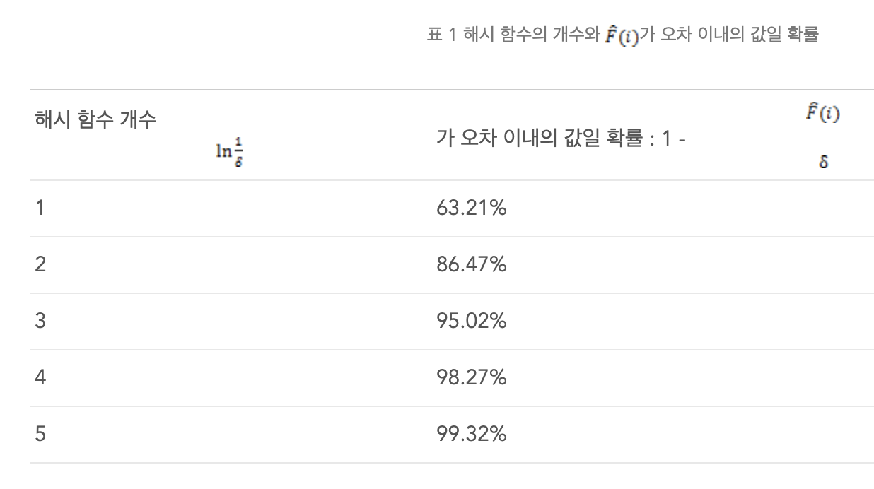 중요한 것은 해시 함수의 개수에 따라 오차율이 변경되며
