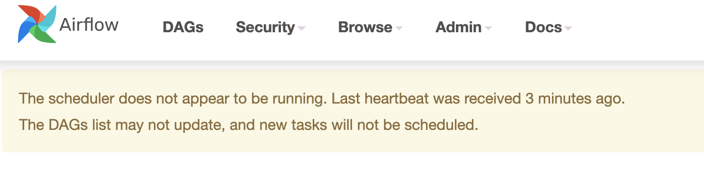 scheduler_heartbeat_sec를 너무 크게 설정하면 위와 같이 경고 문구가 뜨지만 정상 작동한다.
