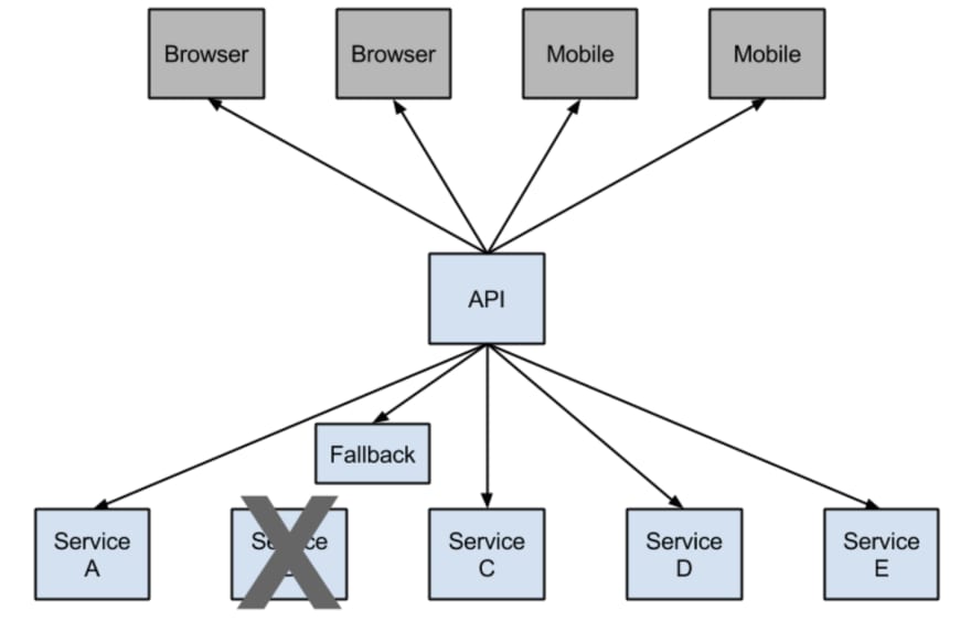 예를 들어 액션 영화 목록을 사용자에게 제공하는 마이크로 서비스가 있습니다. 만일 해당 서비스가 실패하면 가족 분위기 상위 10 개 영화를 단순히 반환하는 다른 기본 마이크로 서비스로 실패를 우회하기 위해 트래픽을 다시 라우팅 합니다.