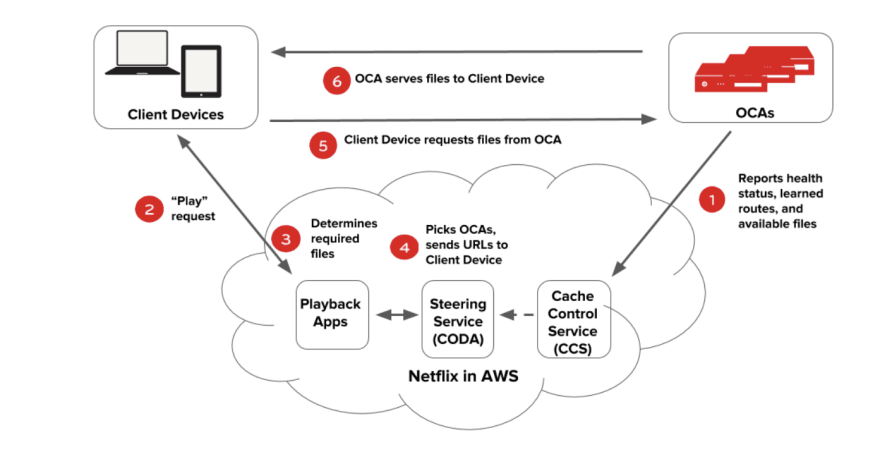 - 재생 서비스는 OCA의 URL을 클라이언트로 전달하고 클라이언트는 해당 OCA에서 비디오 파일을 요청합니다.