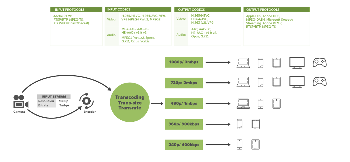 각 장치는 서로 다른 해상도와 네트워크 속도를 갖추고 있습니다. 다른 네트워크 속도로 많은 장치를 제공할 수 있으려면 원본 비디오가 다른 형식으로 있어야 합니다.