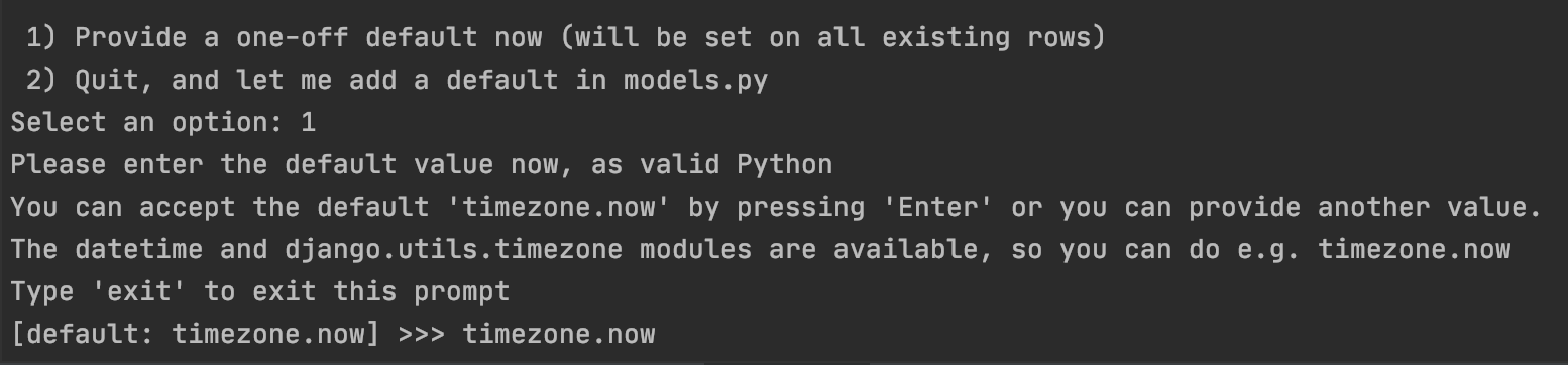 django 마이그레이션시 칼럼을 추가할때 종종 위와 같이 경고 메시지를 볼수 있다.