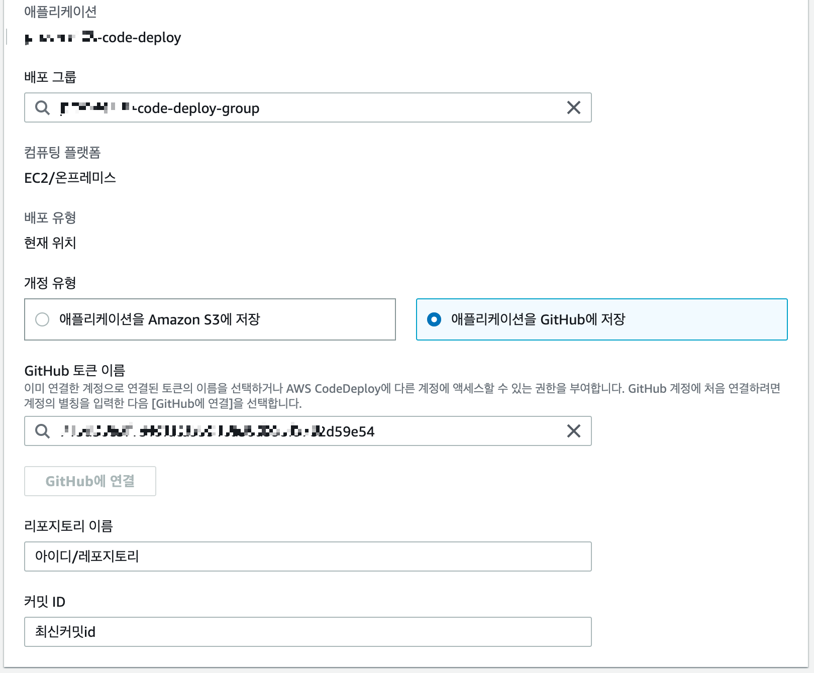 만일 codedeploy 설정시 이런 에러가 뜬다면 설정한 github가 private 설정으로 codedeploy에서 github로 접근이 불가능한 상태이다. 해당 링크를 따라 하면 된다.