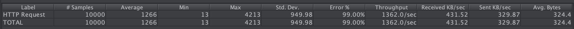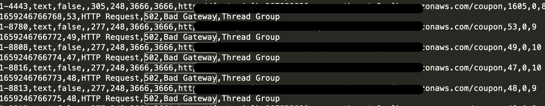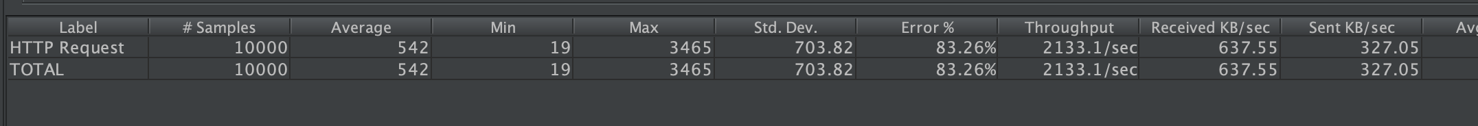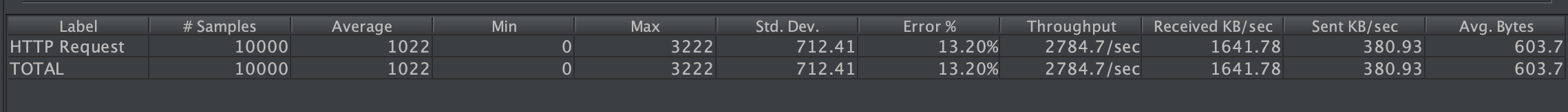 결과는 오히려 에러율이 늘었다. 서버가 감당할 수 있는 수보다 많은 요청을 처리 못하는 것일 뿐, 스레드 수가 문제가 아니었다.