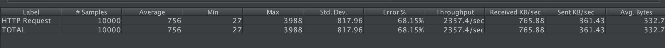 ec2가 두 개일 경우 jmeter 테스트 결과 68%의 에러율을 보인다…약 15% 정도가 추가적으로 성공한 것이다.