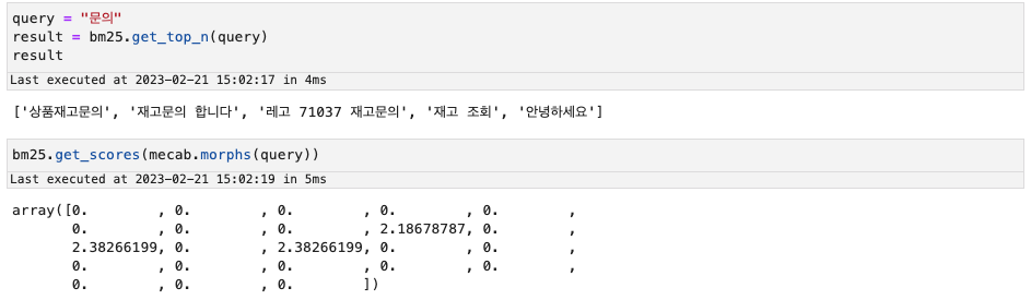 - BM25는 단어의 빈도수가 같을 경우 문서의 길이가 길수록 낮은 score를 가진다.