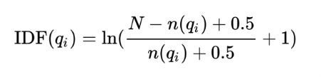 - 키워드 q1,..., q_n을 포함하는 쿼리 Q가 주어질 때 문서 D에 대한 BM25 점수는 다음과 같이 구한다.