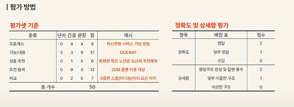 충분한 테스트 셋 확보를 위해 LLM을 통해 먼저 1차 질문 생성 후 어노테이터분들이 데이터 확인 및 추가 데이터를 만들어주셨습니다.