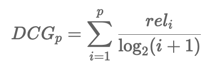 랭킹 순서에 대한 로그함수를 통해 하위권으로 갈수록 rel 대비 작은 값을 가진다. (하위권 결과에 패널티를 주는 방식)