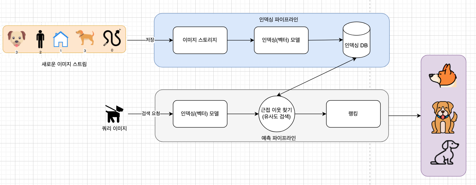 또한 지속적인 인덱싱 파이프라인을 통해 사용자에게 보여줄 유사 이미지를 계속적으로 저장한다.