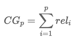 - 상위 p개의 추천 결과들의 관련성(rel, relevance) 누적값