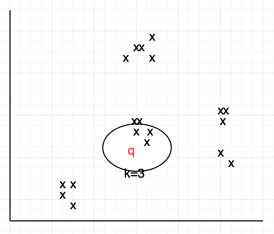 쿼리 q에 대하여 최근접 이웃 검색을 진행한다면 임베딩 공간상에서 가장 가까운 객체들을 찾아야 한다.