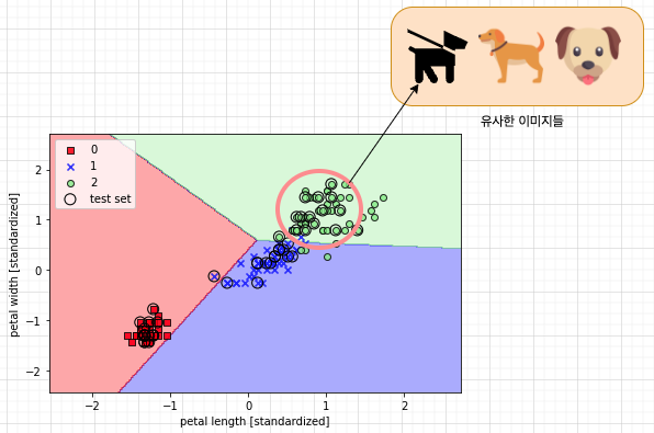 혹은 특정 유사도를 통해서도 분류를 할 수 있다. 개와 고양이의 분류가 물체에 대한 인식이라면, 유사도는 비슷한 모든것을 지칭할수 있다.
