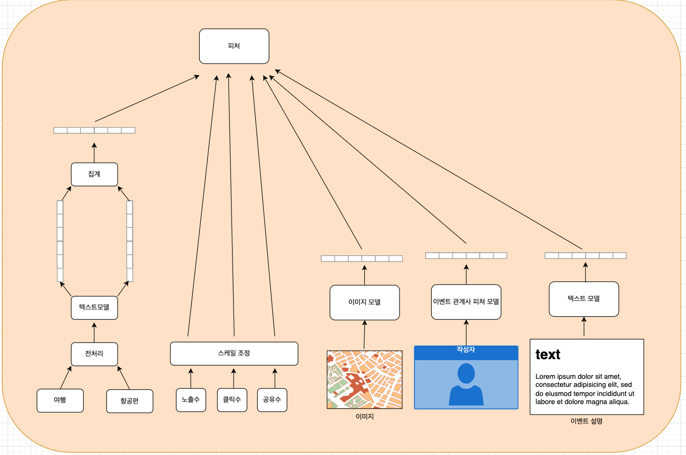 - 해당 이벤트의 노출수 / 클릭수 / 공유수 등을 기반으로 스케일을 조정하여 추천 지표로 사용한다.