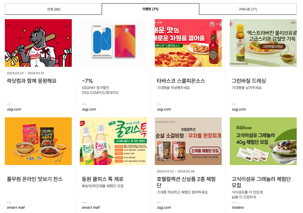 - 이벤트에는 태그 / 이미지 / 설명글 등이 있다.