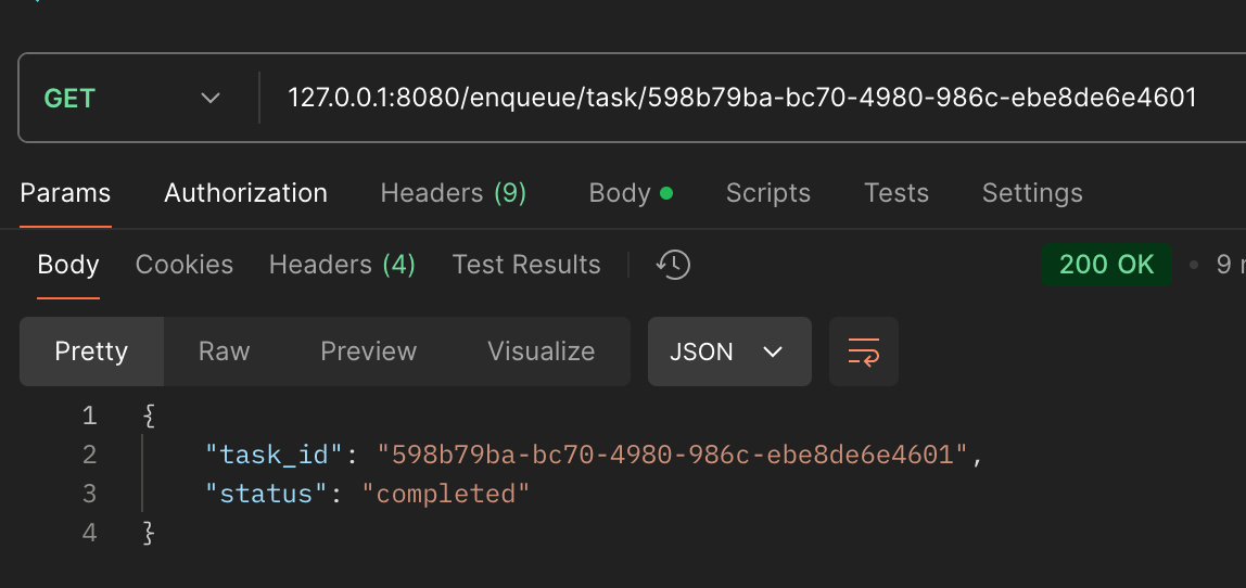다시 웹서버에서 /task/{task_id}를 통해 해당 task가 완료 되었는지 확인합니다.
