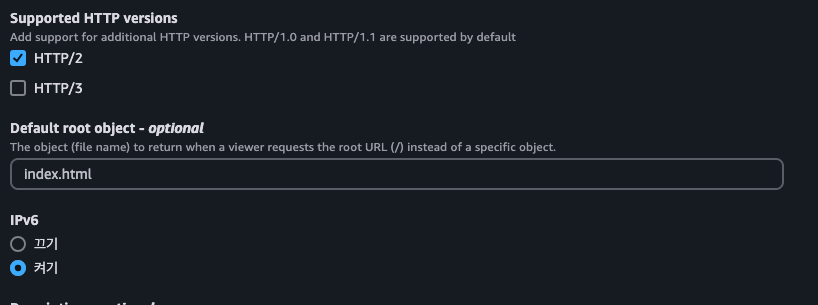 default root object 에는 index.html를 기입