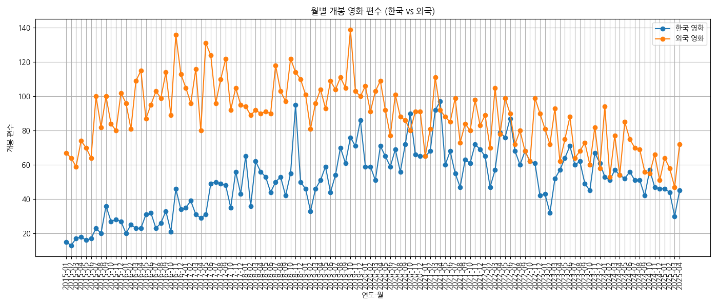 '한국_개봉편수', '한국_상영편수', '한국_매출액', '한국_관객수', '한국_점유율',
