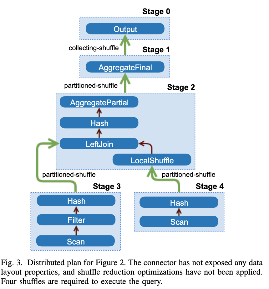 ◦ 인터-노드 병렬 처리 (Inter-node Parallelism): 계획의 일부를 워커 노드 간에 병렬로 실행할 수 있는 "단계(stages)"로 식별하고, 단계 사이에 데이터를 교환하기 위해 셔플(shuffles)을 삽입합니다