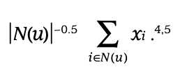 단순화를 위해 불리언(Boolean) 형태의 암묵적 피드백 사례를 가정해 봅시다. N(u)는 사용자 가 암묵적인 선호도를 표현한 아이템들의 집합을 나타냅니다. 이러한 방식으로 시스템은 사용자가 암묵적으로 선호했던 아이템들을 통해 사용자 프로필을 작성합니다. 이때 새로운 아이템 요인 집합이 필요한데, 각 아이템 는 벡터 와 연관됩니다. 따라서 N(u)에 속한 아이템들에 선호도를 보인 사용자는 다음의 벡터로 특징지어집니다