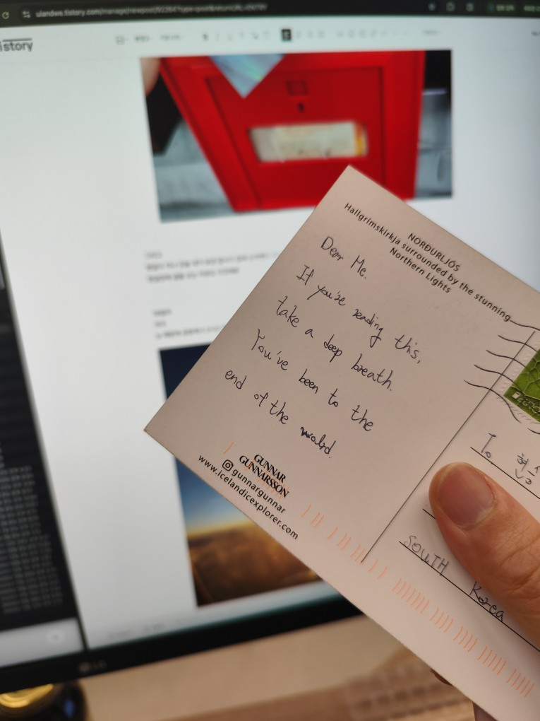 한달이 지나 오늘(2026-01-25) 내가 아이슬란드에서 썼던 엽서가 집에 도착햇다 ㅎㅎ